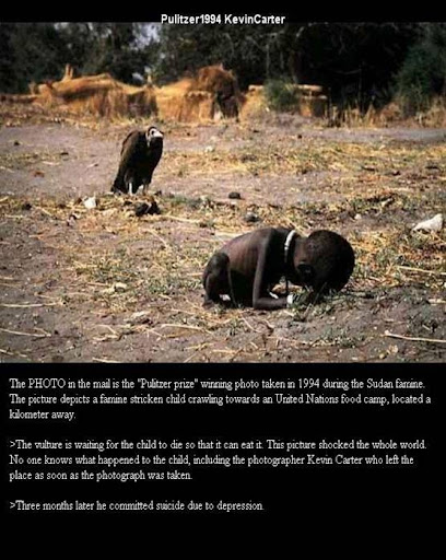 Foto di bawah adalah foto pemenang "Pulitzer Prize" (Award di bidang fotografi, CMIIW) yang diambil pada tahun 1994 ketika bencana kelaparan terjadi di Sudan.